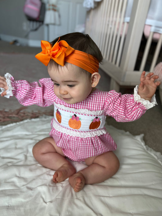 Sold outPink, Plaid, Pumpkin Baby Romper